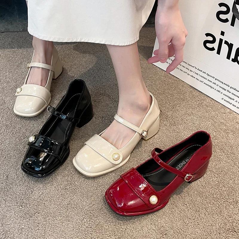 Fashion Red Mary Jane Heels Women Shoes 2024 Fashion Retro Square Toe Hollow Out Casual Mary Jane Shoes Women Platform Shoes Zapatillas