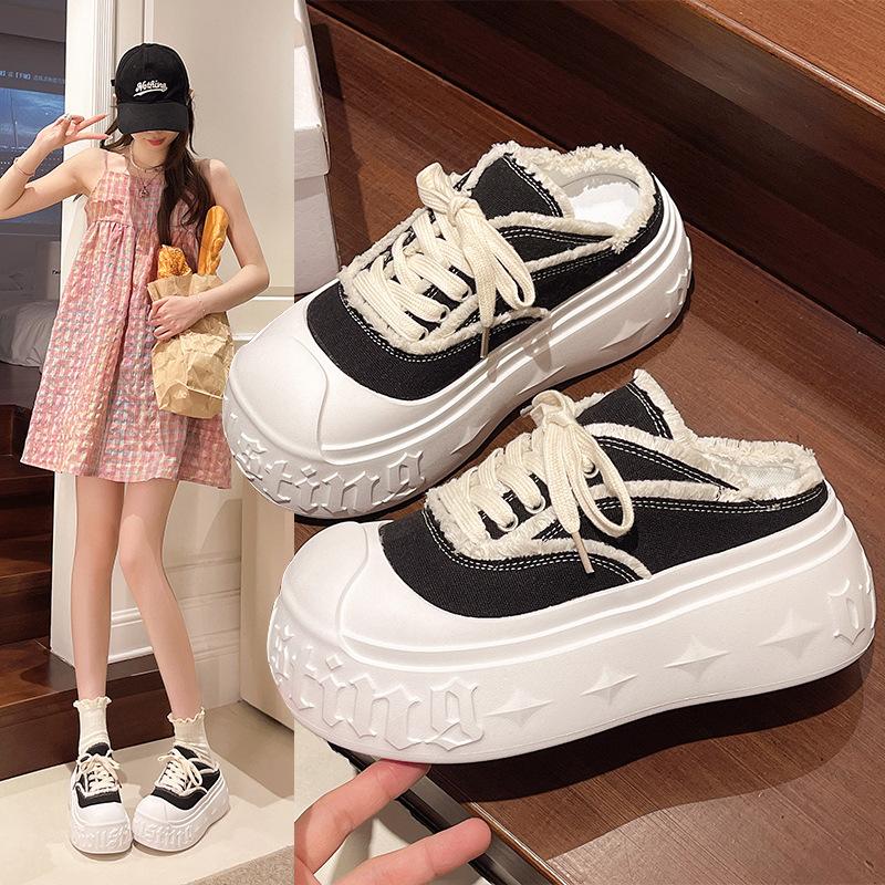 2025 spring and summer Korean version breathable muffin bottom trendy bag head board shoes daily Internet celebrities new thick sole heightening