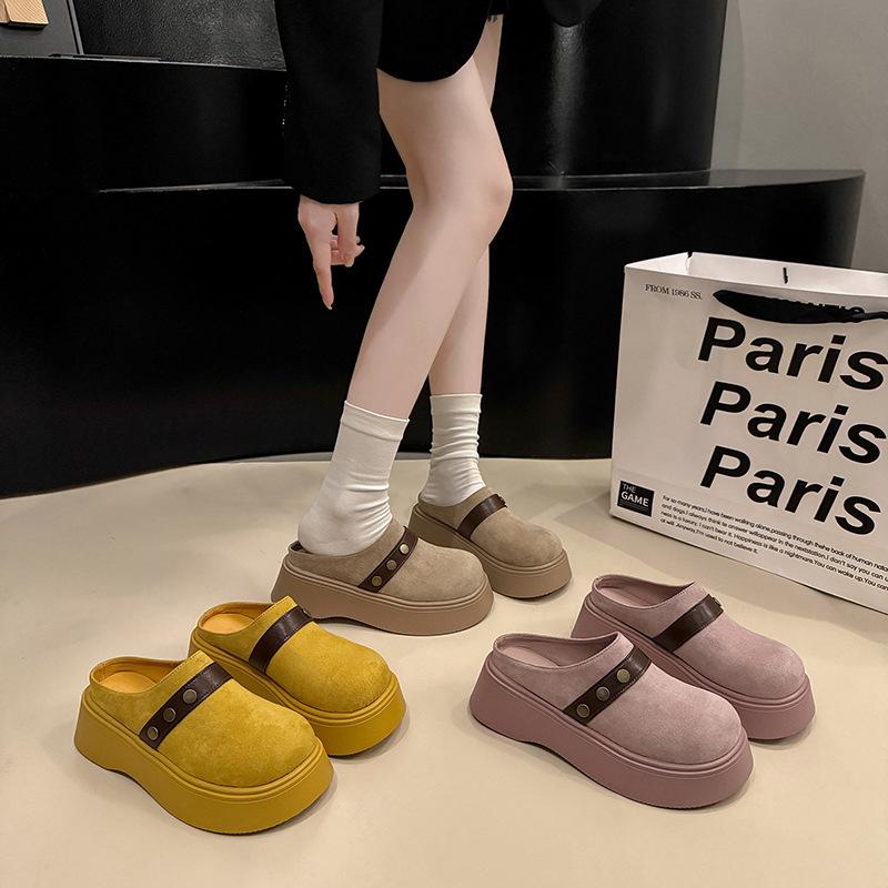 Lefu retro thick-soled bag head half-drag women's shoes wear spring and autumn new lazy one-pedal muffin heightening Boken shoes