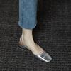 Francouzské léto 2025 nové čtvercové špičky mělké zadní vzduch silný nízký podpatek jeden pedál jednoduché boty plochá podrážka vaková hlava sandály ženy