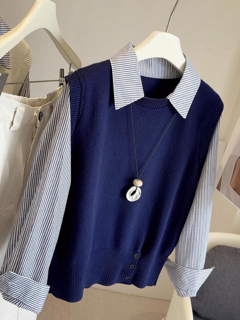 2025 Úzký pruhovaný úpletový top s dlouhým rukávem – Dámský dvoudílný top omlazující vzhled