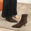 Pointed Toe Slim Boots Women Retro Suede Mid Heel French Style Ankle Boots