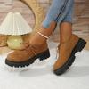 Women's Thick Heel Shoes Spring New Round Head Splicing Suede Front Strap Thick Sole Anti-slip Wear-resistant Loafers