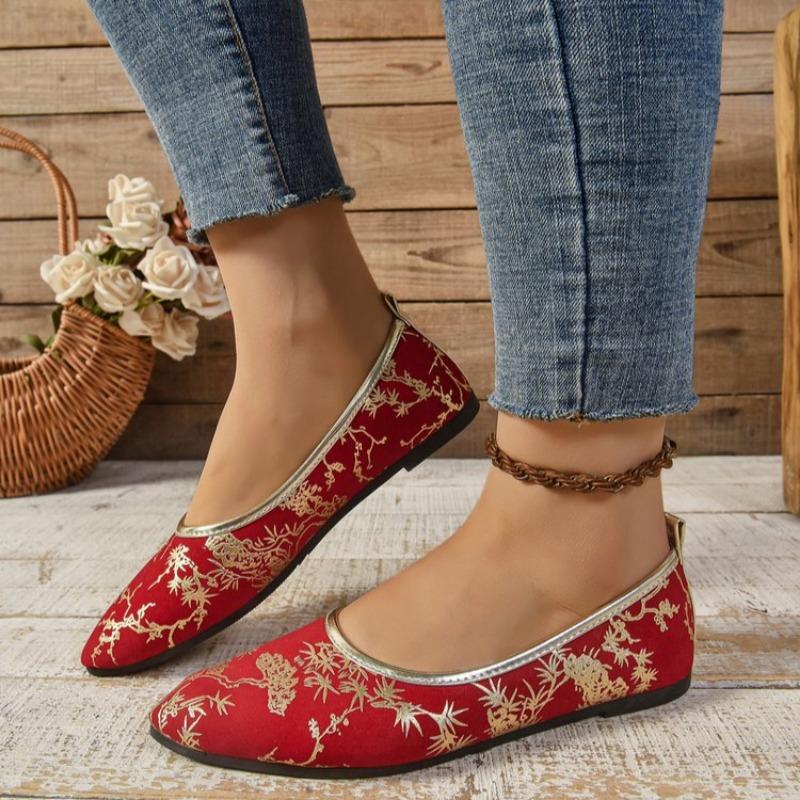 Summer New Single-shoe Women's Pointed Head Shallow Mouth Glitter Cloth Soft Sole Anti-slip Wear-resistant Flat Shoes