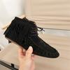 Módní AIYUQI Dámské kotníkové boty Pravá kůže 2025 Nové Plochá protiskluzová kovbojské boty Dámské Velká velikost Třásně Kotníkové boty Pro ženy