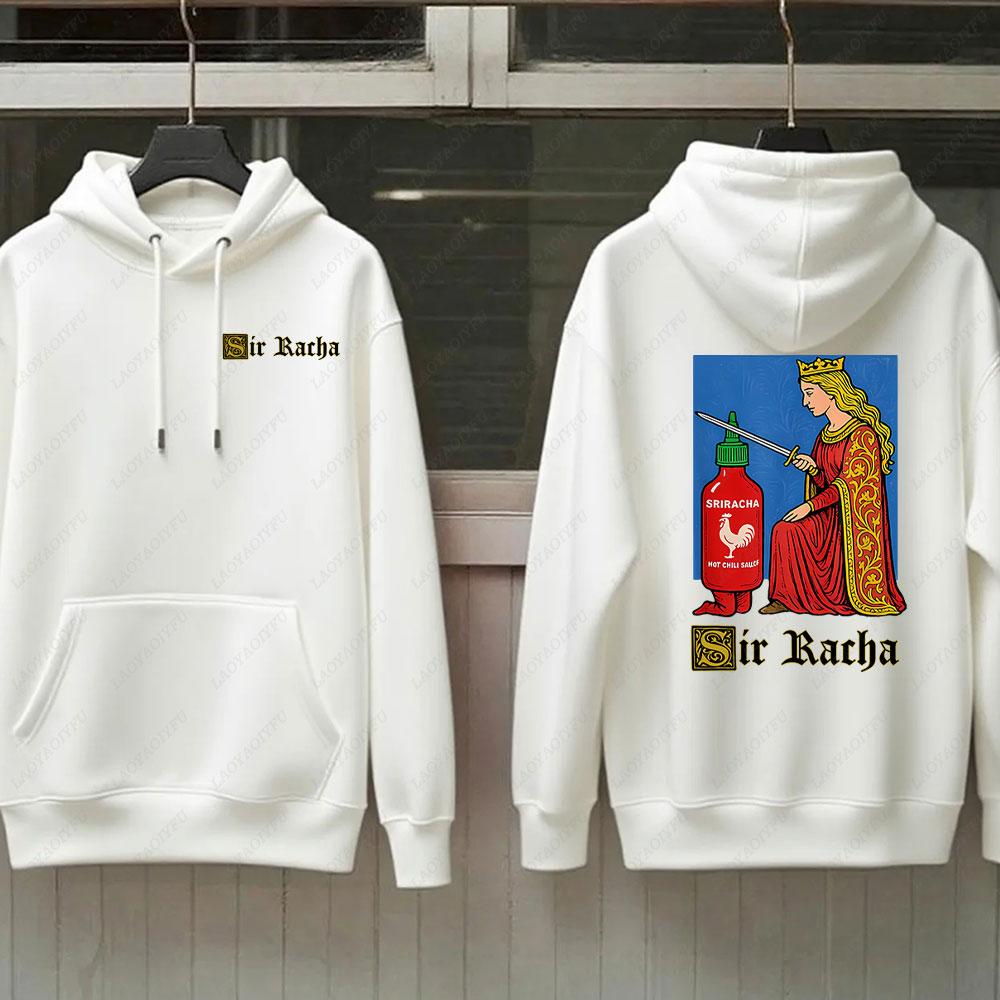 Sir Racha Man Woman 2 SidedHoodies Sri Racha Medieval Art Pullover Sriracha Fan Merch Retro Medieval Graphic Sweatshirt Hoodie