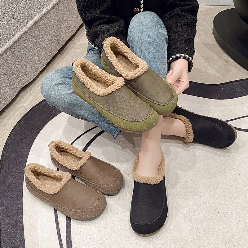 Velvet beanie shoes for women's winter new retro matte and soft-soled warm cotton shoes for women
