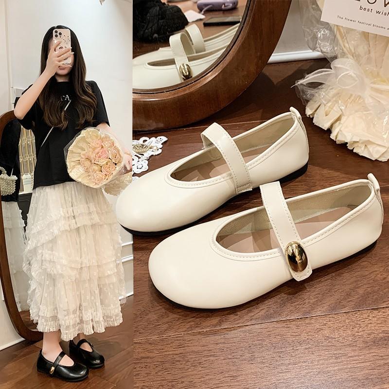 French retro shallow mouth single shoes women's spring new French evening shoes gentle fairy wind flat Mary Jane shoes women