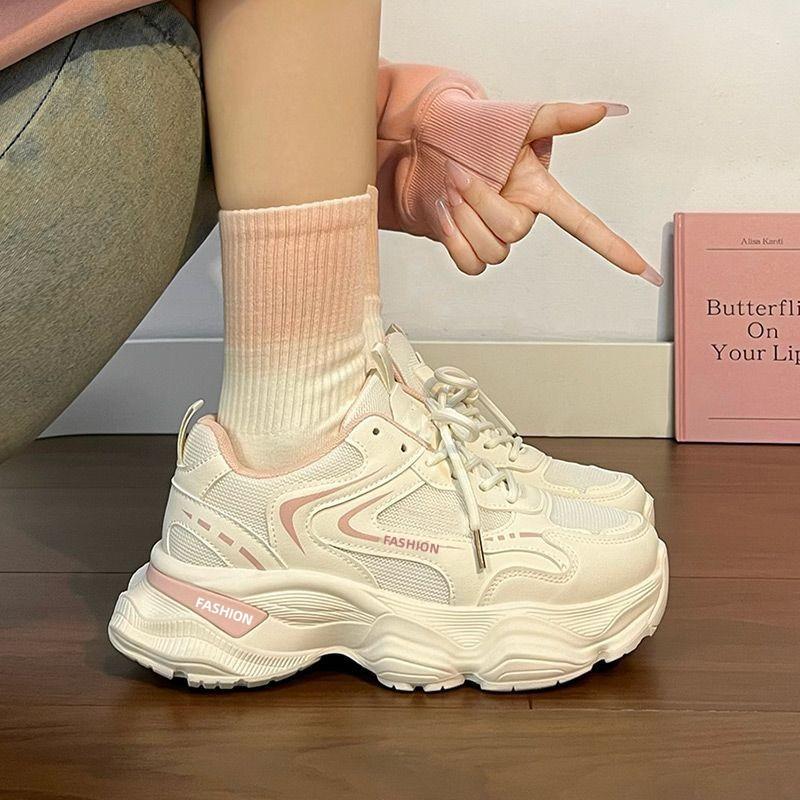 Lightweight women's shoes new ins platform dad shoes high value fashion versatile mesh soft sole sports shoes