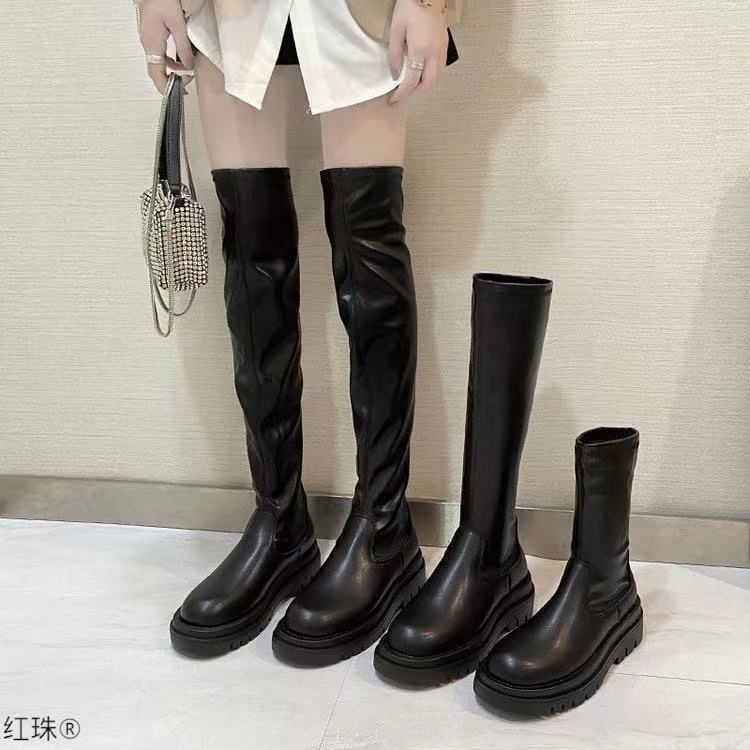 Elastic knee high boots women's autumn and winter new small knight boots thin boots thick heel long boots