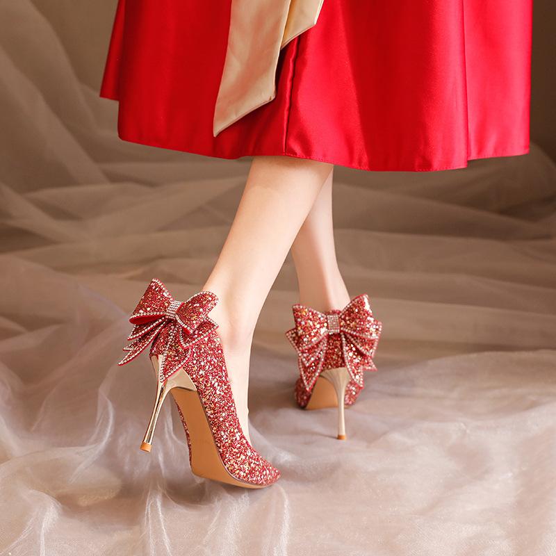 Xiuhe Svatební šaty Svatební Křišťálové Flitry Bar Micva Perlový Řetízek Mašle Dámské Vysoké Podpatky Svatební Boty