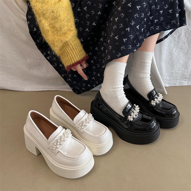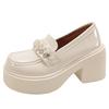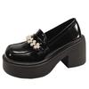 White British style thick heel platform small leather shoes women's new autumn skirt pearl Mary Jane single shoes