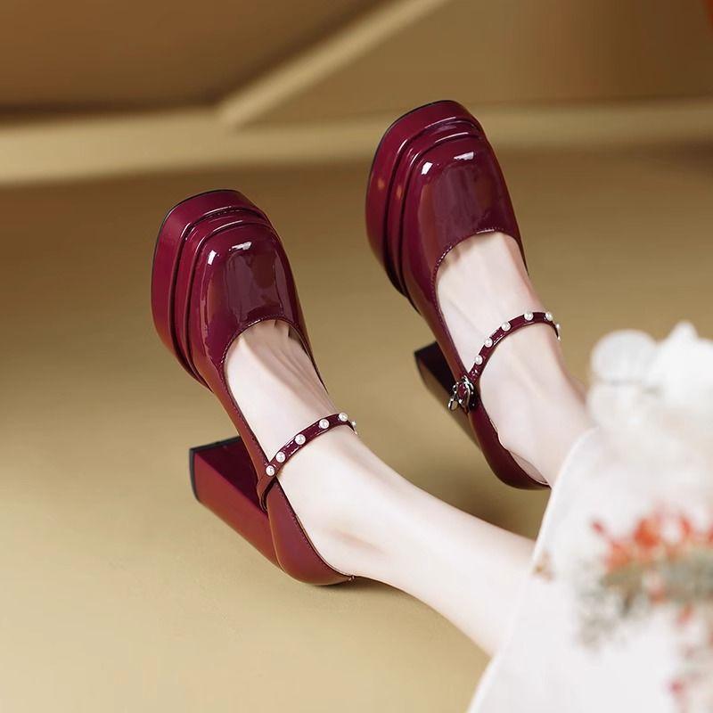 Versatile fashion small thick heel waterproof table high heels single shoes women's new square head Mary Jane women's shoes