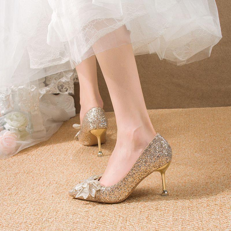 French crystal wedding shoes bow Xiuhe wedding dress autumn new bridal shoes women's wedding high heels high sense