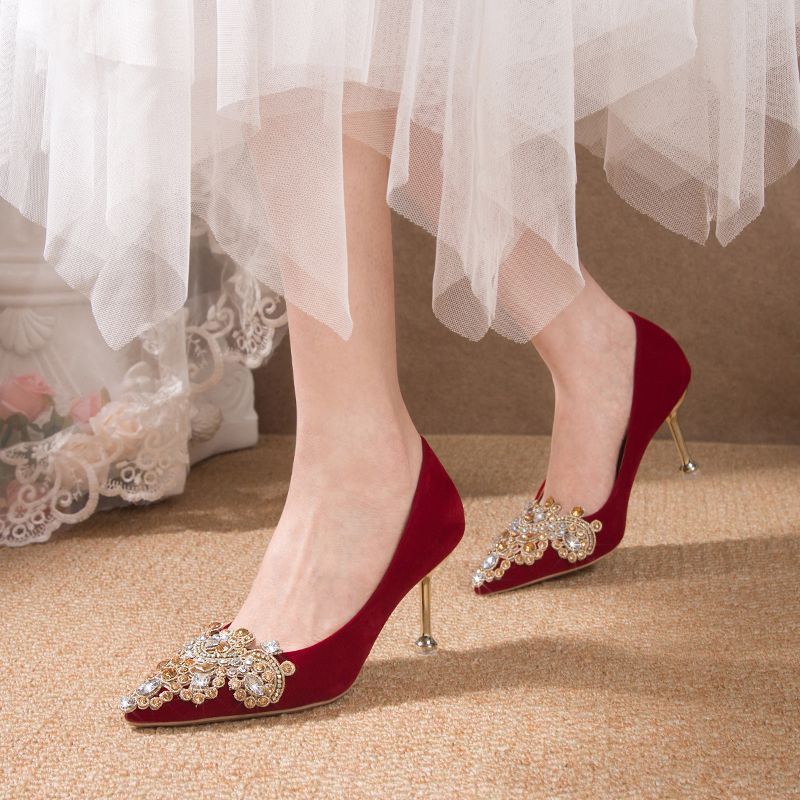 Niche stiletto high heels women's rhinestone wedding shoes bride shoes show clothes wedding dress two wear design new