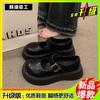 thick-soled black light-mouth small leather shoes for women's autumn new versatile Mary Zhenzi with skirt single shoes