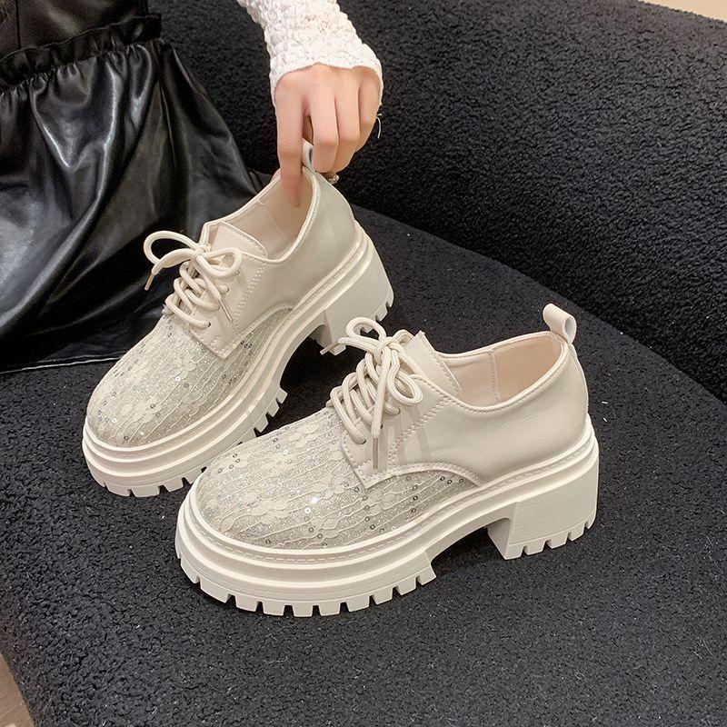 Big head lace-up fashion heightening loafer single shoes spring and summer new small thick-soled women's shoes small leather shoes women