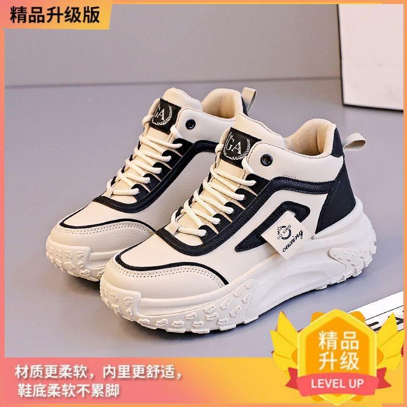 Thick-soled heightening leather high-top shoes, fashionable versatile spring and autumn dad shoes, student sports and leisure shoes
