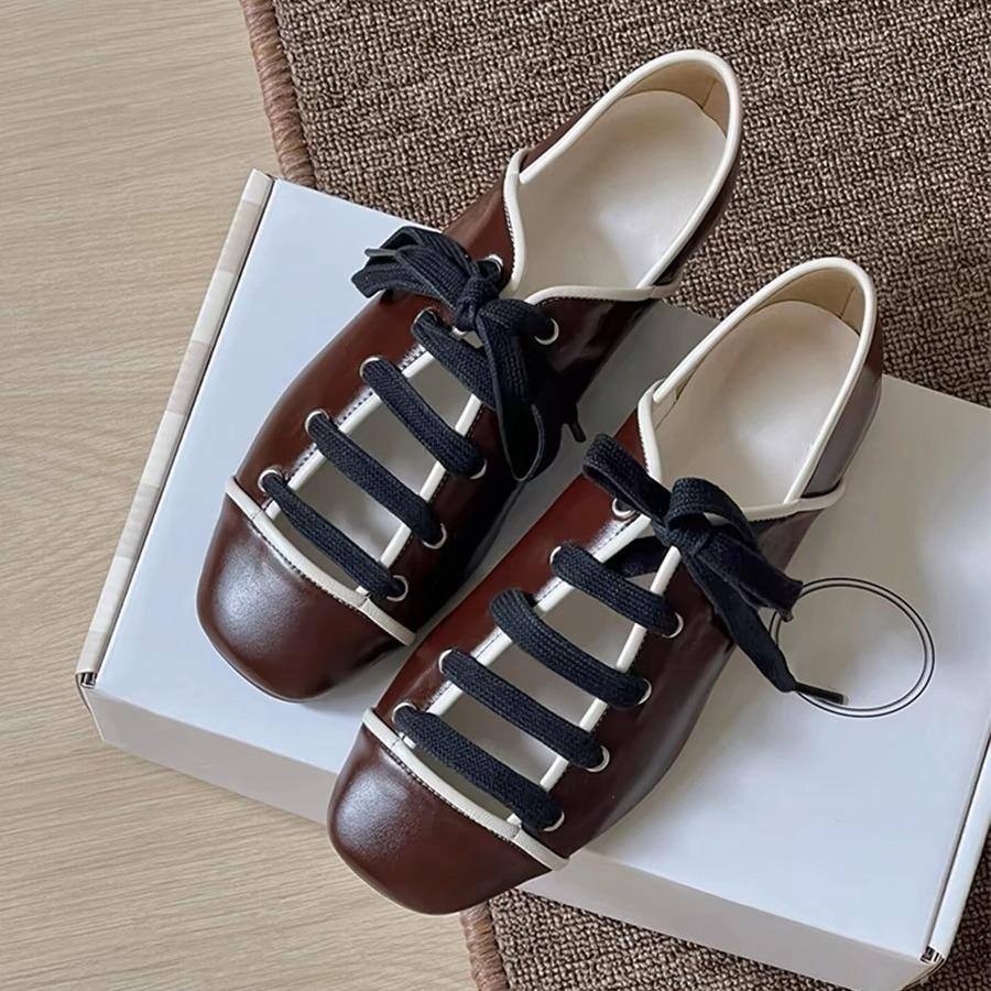 Soft leather soft-soled ballet hollow single shoes women's flat-soled niche round head lace-up sports board shoes