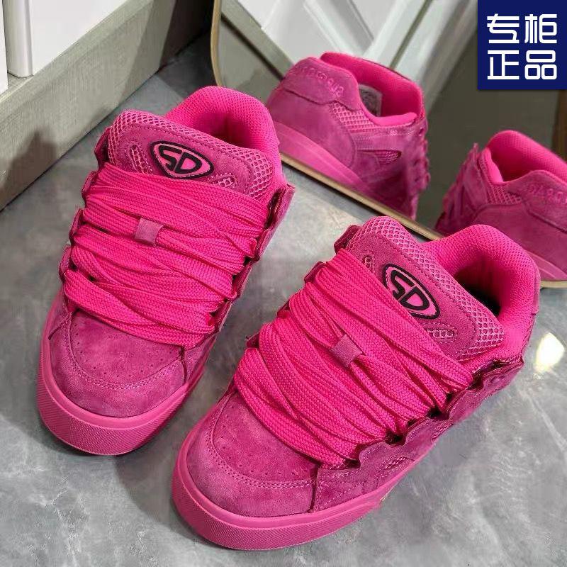 Nové boty na platformě barvy dračího ovoce, dámské ins niche retro ležérní boty, americké sportovní boty zvyšující výšku