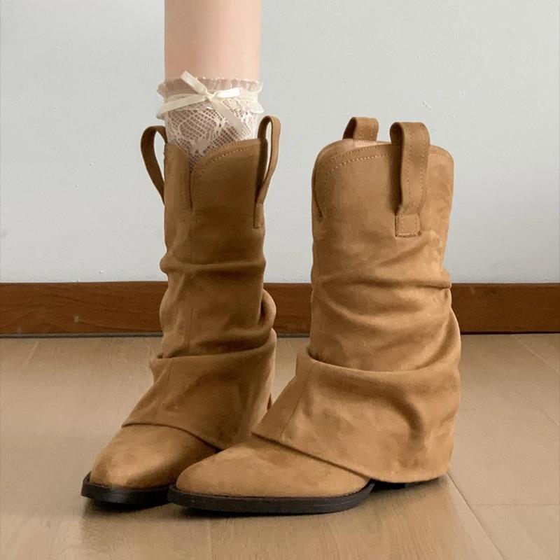 Fashion Vintage Pointed Toe Women Western Cowboy Boots Fashion Slip On Shoes Ladies Elegant Thick Heel Mordern Short Booties Autumn