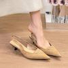 Fashion New Summer 2025 Women's Dress Shoes Patent Leather Slip on Pointed Toe Sandals Buckle Slingbacks Mid Heels Pumps Sandalias Mujer