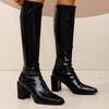 Módní dámské kozačky na vysokém podpatku z lakované kůže nad koleno Podzimní móda Čtvercová špička Dlouhé boty Dámské Zip Blokový podpatek Společenské šaty Boty