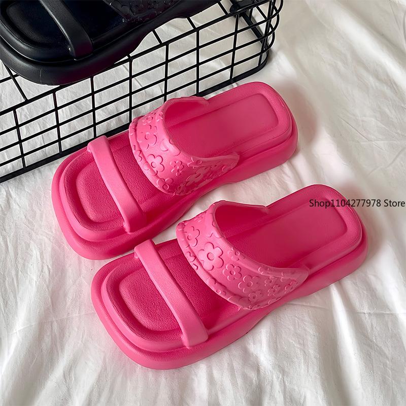 Módní bonbónově barevné dopaminové pantofle platformové klínky sandály dámské vodotěsné silná podrážka plážové nazouváky žena měkké Eva pantofle žabky