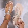 Fashion 2025 Summer New Outfit T-shaped Diamond Sandals Women's Flat Toe Sandals Pearl PVC Sandals Comfortable and Versatile