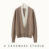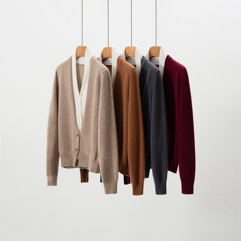 Embrace the elegance and warmth of the upcoming season with this luxurious cardigan designed for Autumn/Winter 2025. Expertly crafted from premium cashmere, this piece features a sophisticated solid pattern and a stylish V-neckline, adding a touch of refinement to any outfit. Its long sleeves provide comfort and coziness, perfect for cooler days. The two-tone faux layered design infuses a contemporary twist, making it a versatile addition to your wardrobe. Ideal for both casual and formal occasions, this cardigan effortlessly combines comfort with chic style.