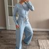 This stylish Women's Summer Fashion Knit Cardigan and Pants Set is perfect for adding a touch of elegance to your warm-weather wardrobe. Designed with a solid pattern, it features a button-front cardigan with long sleeves and a classic round neck, ensuring both comfort and sophistication. Crafted from high-quality polyester, this set offers a lightweight and breathable fit, ideal for keeping you cool on sunny days while maintaining a chic and polished look. Perfect for both casual outings and more dressed-up occasions, this versatile set is a must-have addition to any summer wardrobe.