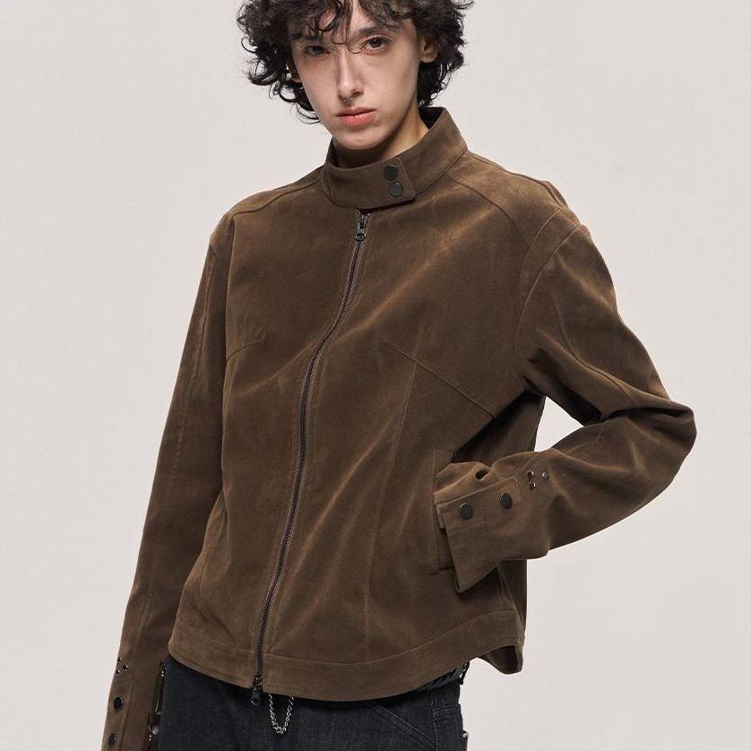 Lade Autumn "Modern Times" Retro Suede Stand Collar Harrington Jacket for Men and Women