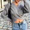 2025 European & American Autumn/Winter V-Neck Crossover Crop Top Pullover Sweater Cardigan