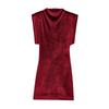 Zlaté sametové minišaty bez rukávů s ramenními vycpávkami, sexy úzký střih, design s vysokým pasem.
