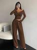 Objevte ležérní styl s touto šik soupravou overalu s výstřihem do V a širokými nohavicemi, ideální pro podzimní a zimní sezónu.. Tento komplet se vyznačuje jednobarevným vzorem a decentní pletenou ozdobou a nabízí jak pohodlí, tak eleganci.. Vyrobeno ze směsi polyesteru a dira-lycry, zajišťuje lichotivý střih a měkký pocit.. Ležérní styl z něj činí všestrannou volbu pro různé příležitosti, zatímco design se širokými nohavicemi dodává vašemu šatníku trendy nádech.