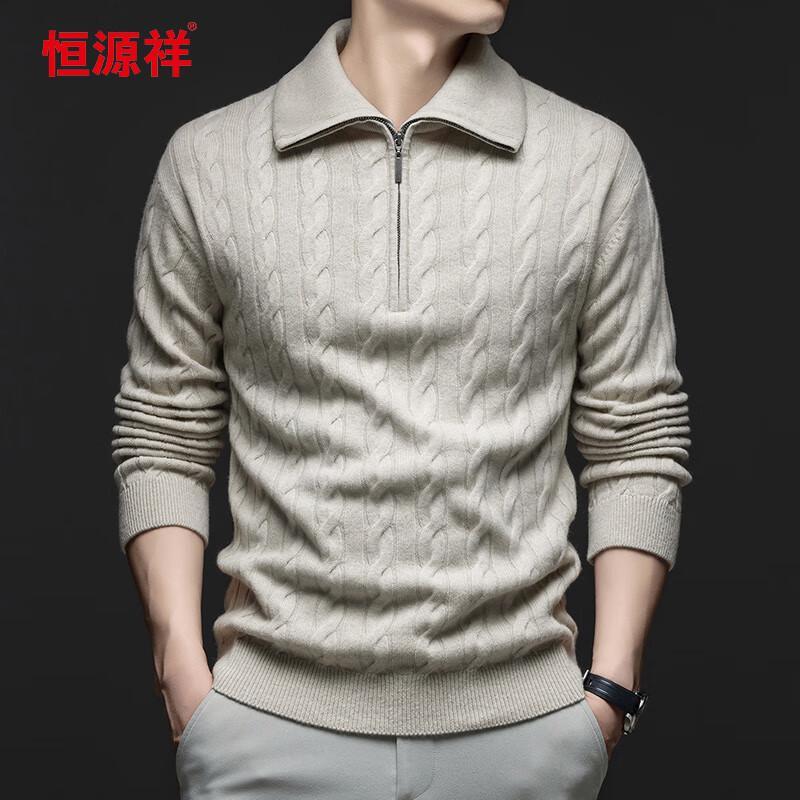 Hengyuanxiang Men's 100% Cashmere Thick Polo Sweater 18173