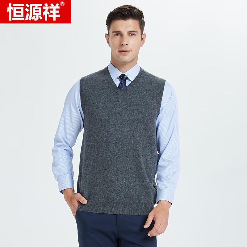 Hengyuanxiang Men's V-Neck Solid Wool Knit Vest