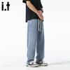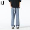 Elevate your casual wardrobe with Fingercroxx Men's Autumn Washed Loose Straight Jeans. These trendy, full-length denim pants offer a comfortable loose fit and a classic straight-leg cut. Featuring a natural waist and a tie-closure fly, they are crafted from durable denim with a slight stretch, enhanced by a special washed process for a soft, worn-in feel. Ideal for everyday wear and school, combining effortless style with lasting comfort and wear resistance.