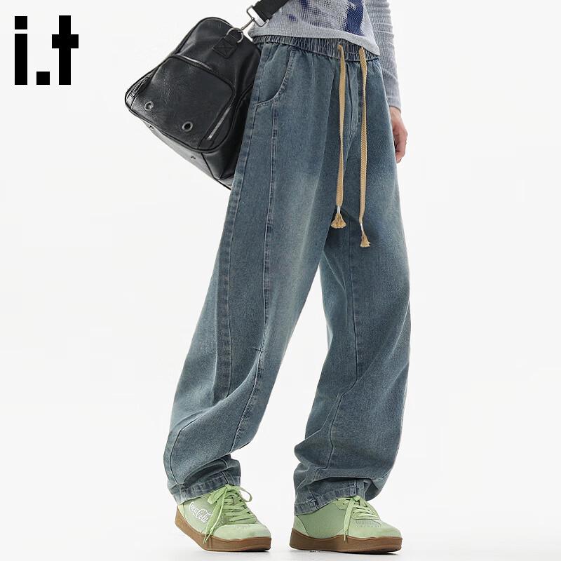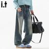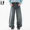 Fingercroxxit Men's American Style Loose Fit Curved Jeans