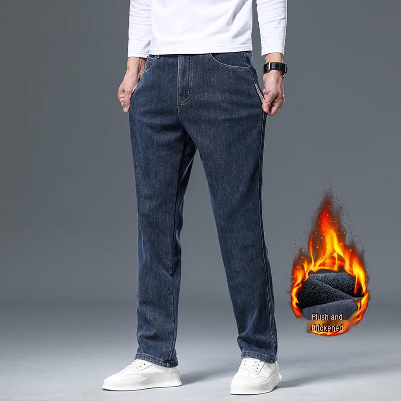 Yiliteng Men's Fleece-Lined Straight-Leg Jeans