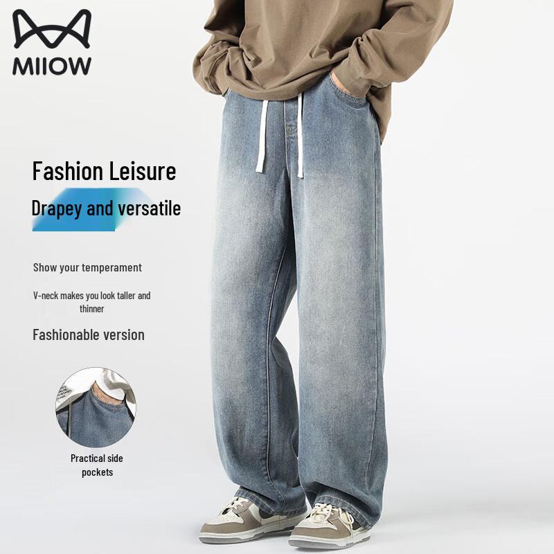Maoren Men's Gradient Loose Fit Wide-Leg Jeans