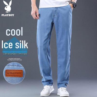 PLAYBOY Men's Ice Silk Thin Loose Straight Jeans