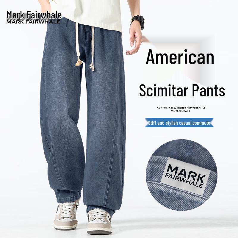 Mark Fairwhale Men's Loose Fit Drawstring Curved-Leg Jeans