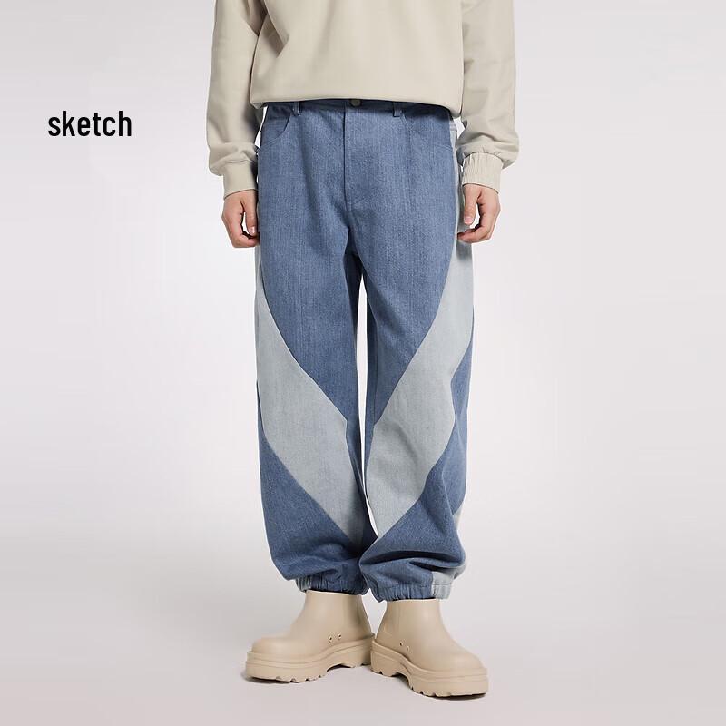 CROQUIS Men's 2024 Spring Patchwork Wide-Leg Denim Jeans