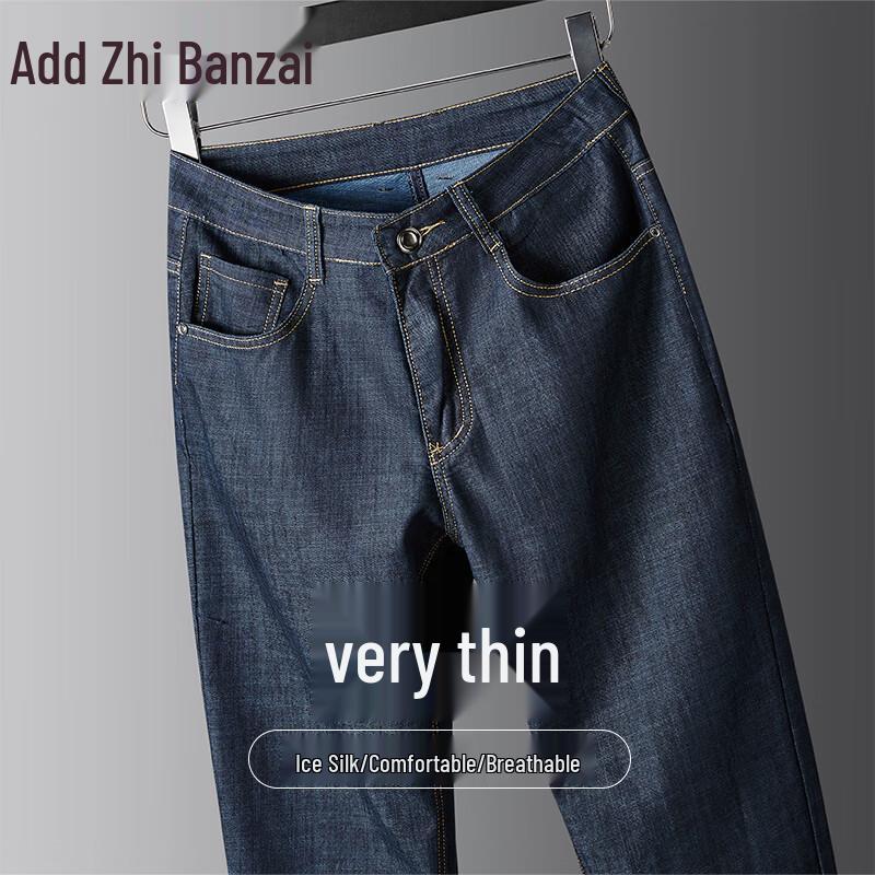 Zengzhi Men's Ice Silk Straight Fit Jeans