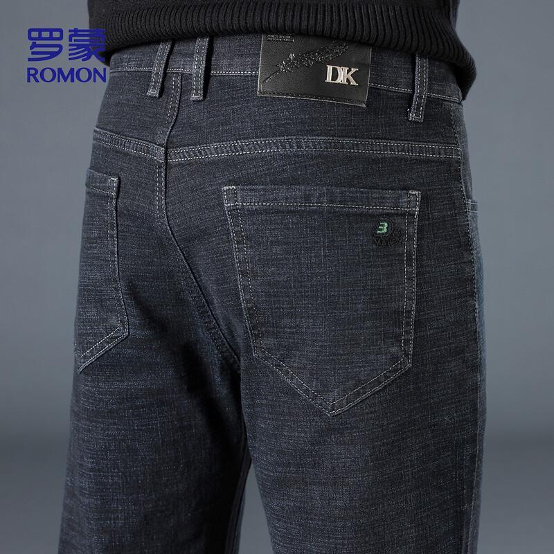 These ROMON Men's K951 jeans are designed for the modern man, offering a versatile blend of business casual and everyday style. Crafted from a comfortable cotton-blend stretch denim with a micro-elastic feel, they feature a loose, straight-leg fit and a classic zipper fly. Perfect for autumn, these breathable jeans are suitable for various occasions, from daily wear to relaxed home settings.