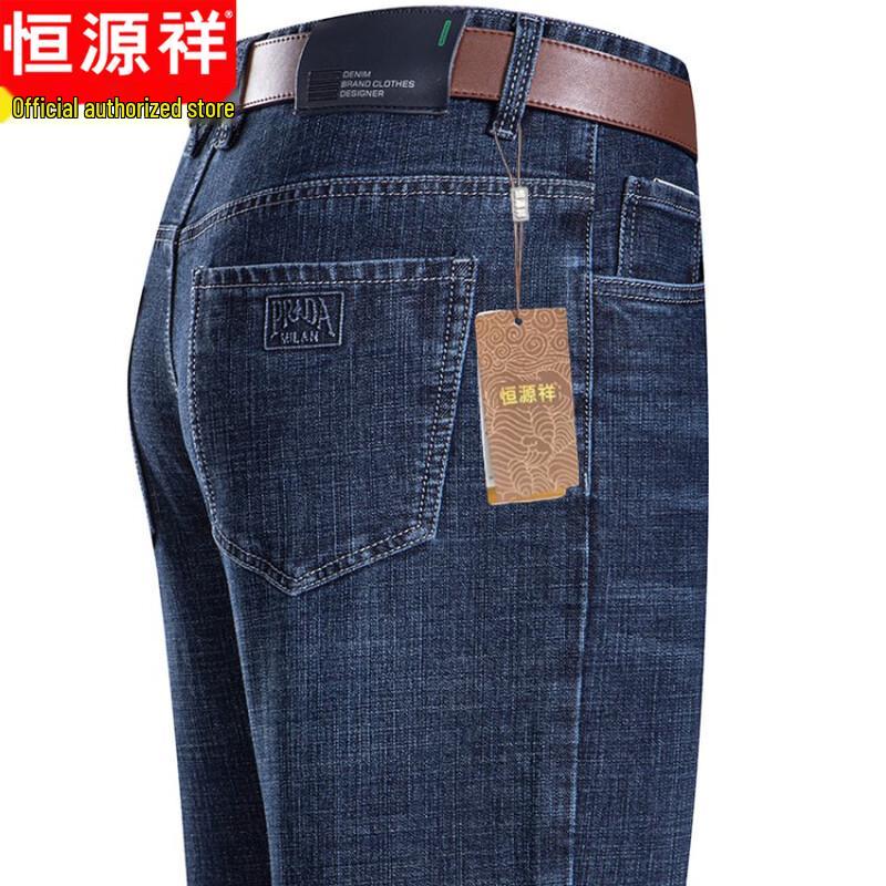 Discover the Hengyuanxiang Men's Spring Autumn Elastic High-Waist Straight-Leg Jeans. Crafted from a comfortable cotton-blend fabric (67% cotton, 31% polyester, 2% spandex) with slight stretch, these breathable jeans offer both style and comfort. Designed with a natural high-waist and a classic straight-leg cut, they are perfect for middle-aged and elderly men seeking a versatile option for business casual or everyday wear. Featuring a zipper fly, these regular-thickness jeans are an essential for your spring and autumn wardrobe.