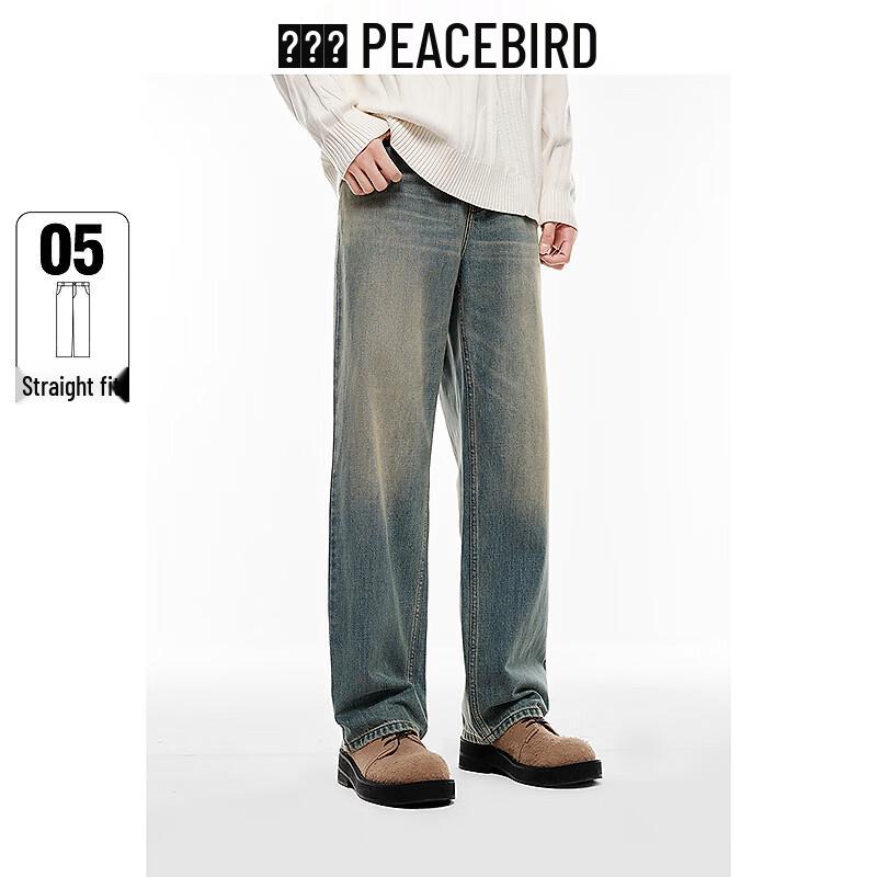 PEACEBIRD Men's Washed Distressed Straight-Fit Denim Jeans