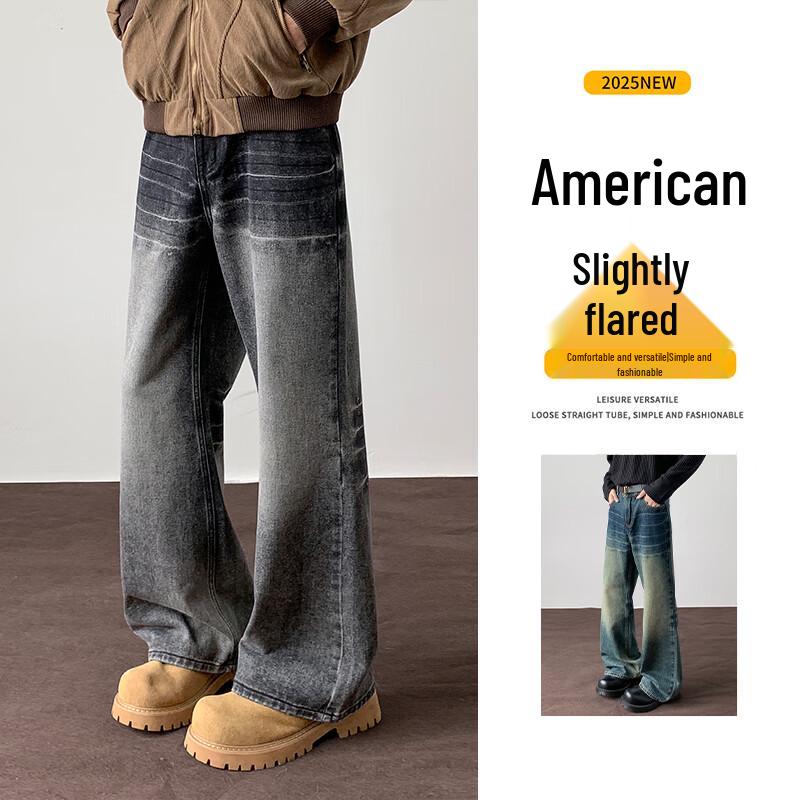 VUUG Men's Washed Loose Straight-Leg Jeans
