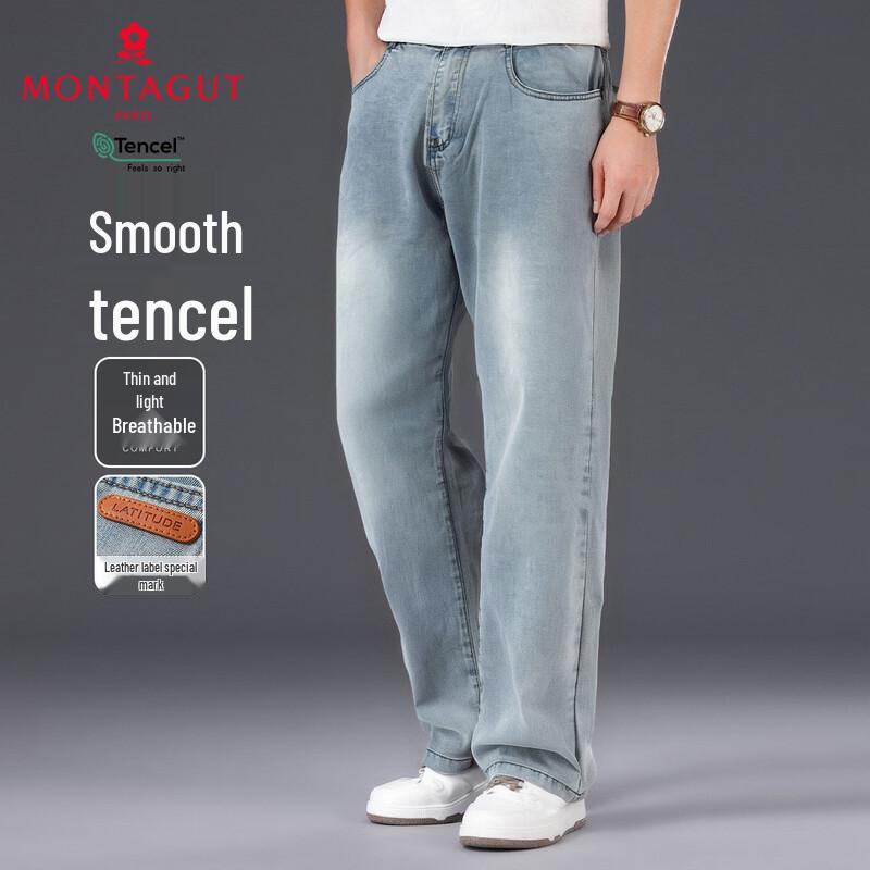 MONTAGUT Men's Smooth Tencel Breathable Loose Jeans